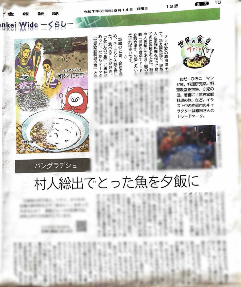 世界25カ国を巡り、現地の人と家庭料理を作って食べてきた体験を、イラストとエッセーで紹介する連載が開始しました。ぜひご覧ください。(月1回、webと日曜日版にて掲載)