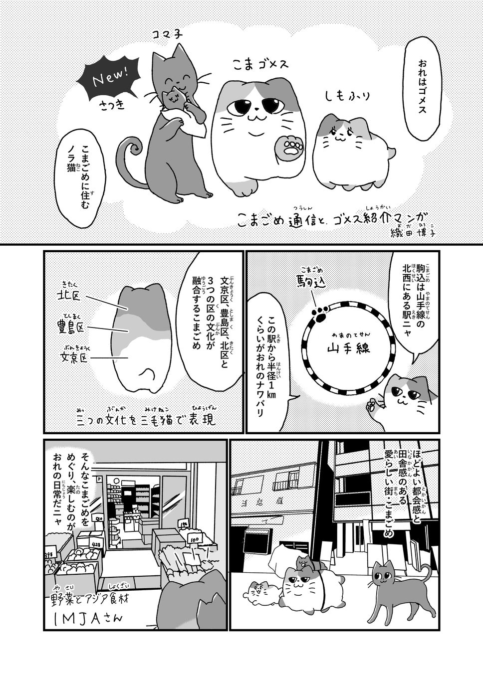 こまごめ地域をパトロールする三毛猫(3つの文化を象徴)こまゴメスは、こまごめ通信のキャラクターでもあり、最近ではこまごめ地域の人々に認知され、愛されるキャラクターに成長しています。