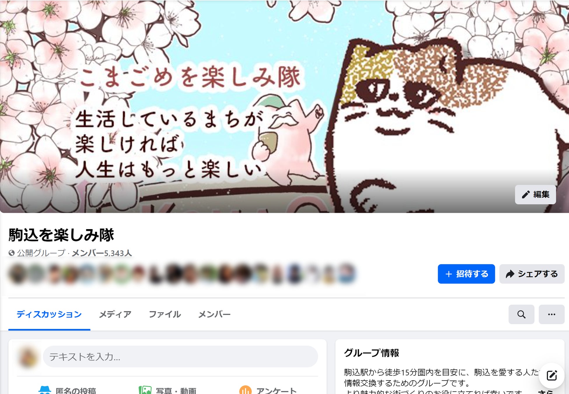 フェイスブックグループ『こまごめを楽しみ隊』(参加者5,344名 2024/4時点)でこまごめ情報をやりとりしたり、コミュニティペーパー『こまごめ通信』にお気に入りの情報を紹介して楽しんでいます。