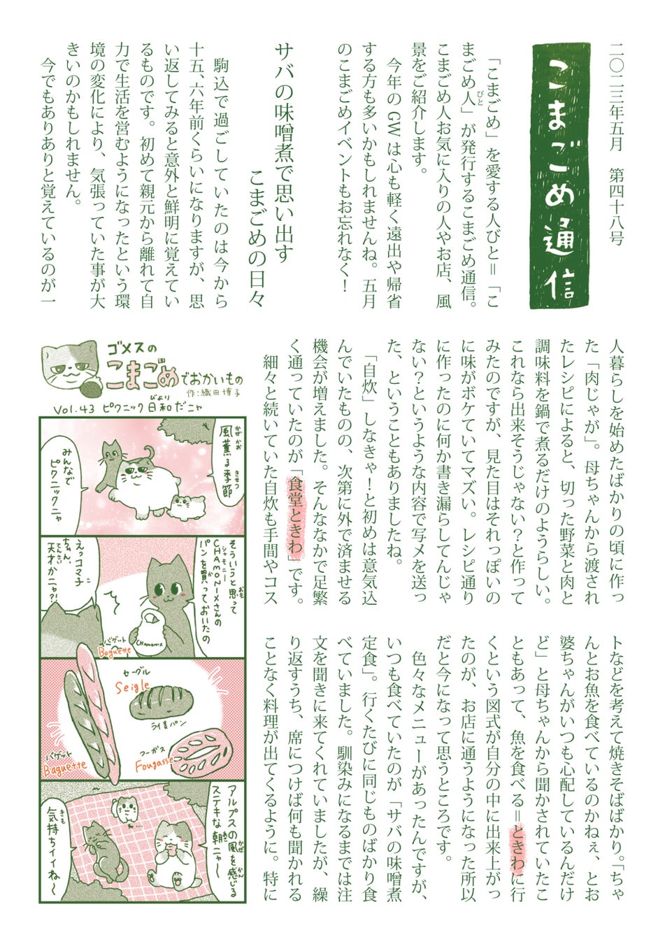 2019年から毎月発行されるA5サイズ両面のコミュニティペーパー『こまごめ通信』12か月分と、くれまちこさんの巻頭言、マンガ家の織田博子さんによる『こまごめ通信と、ゴメス紹介マンガ』を掲載し、1冊の本にまとめています。