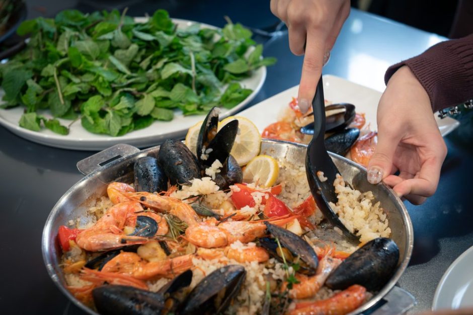スペイン料理『パエリア』です。今回はムール貝とエビでシーフードパエリアにしました。
