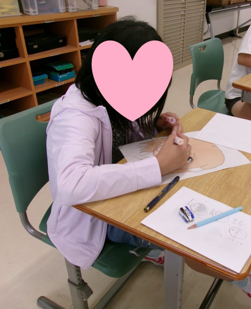 色彩センスが素晴らしい子、とてもうまくて描き慣れている子、外国っぽいセンスの子、コツコツと丁寧に描いていく子…さまざまな表現があり、楽しかったです。