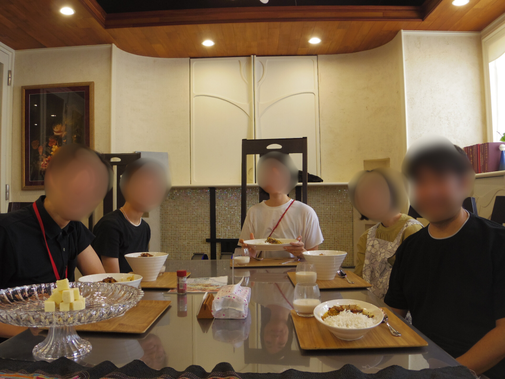 調理の段階でも和やかな雰囲気が流れ、交流が促進されている光景が見ていてすがすがしかったですが、料理が出来上がり実食の段階ではより柔らかい雰囲気となりました。NPOではシビアな問題を取り扱うことが多いため、普段のミーティングではより厳しい雰囲気であるそうです。いつもとは違った雰囲気の中、打ち解けてお話し合う姿や、志についてお話されている姿が印象的でした。