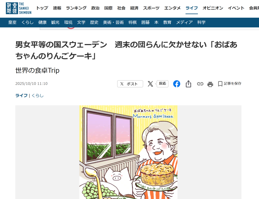 第二回目「男女平等の国スウェーデン 週末の団らんに欠かせない「おばあちゃんのりんごケーキ」」
