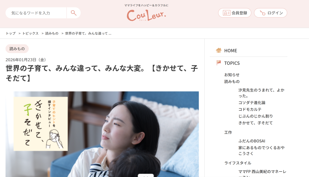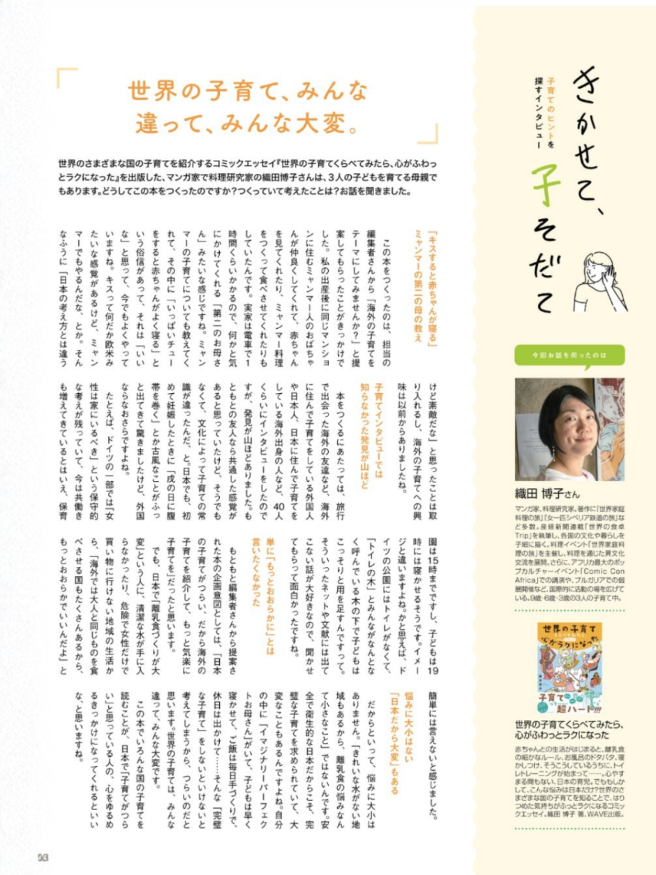 子育て家族を応援する情報誌『クルール』に、インタビュー記事『世界の子育て、みんな違って、みんな大変【きかせて、こそだて】』が掲載されました。全国6エリア、28.5万部配布されています。